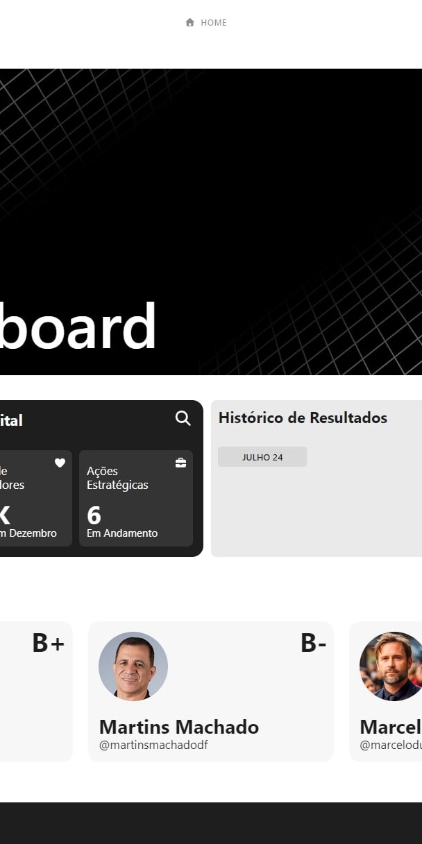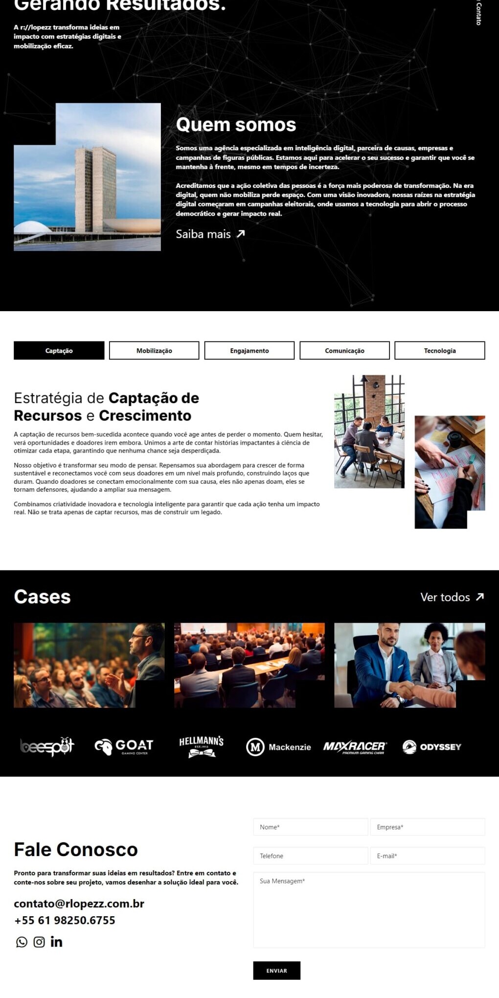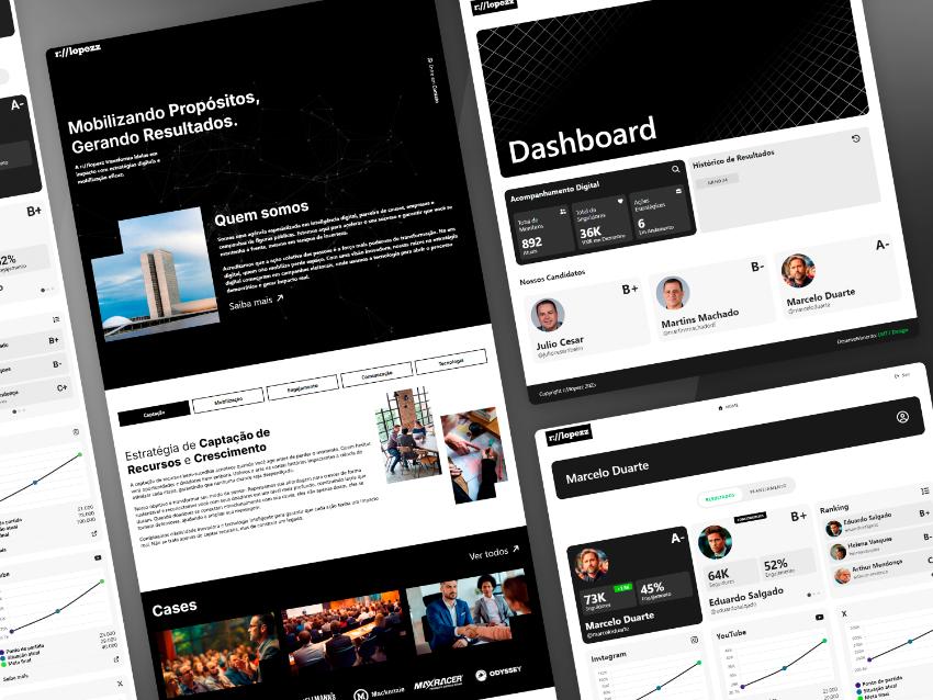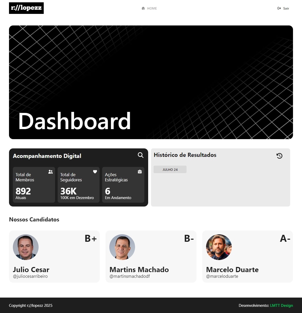 Com o crescimento das operações e a necessidade de apresentar resultados de forma clara e profissional, surgiu a demanda por um portal moderno, funcional e voltado à performance, que refletisse credibilidade e inovação no segmento político.